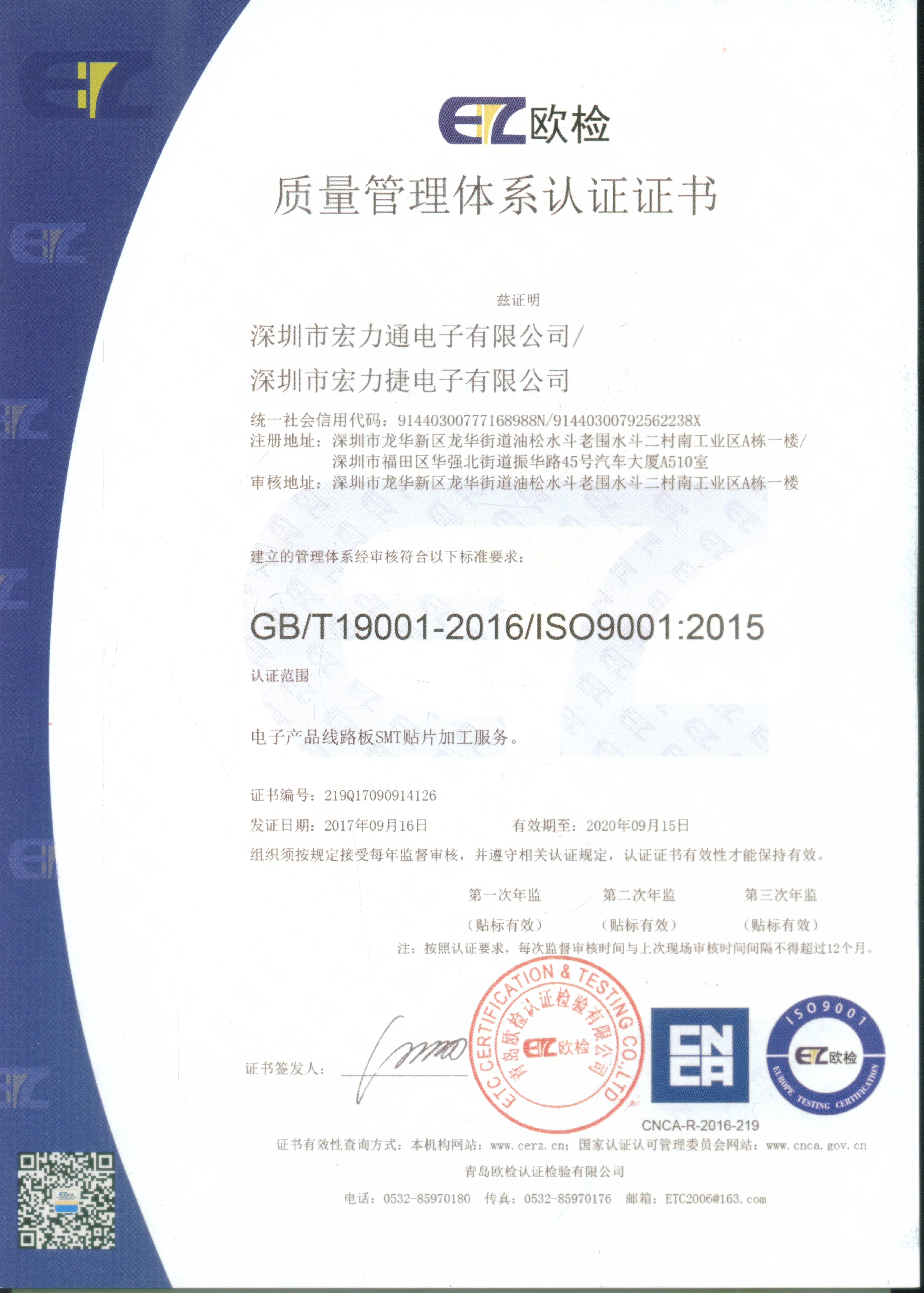ISO9001:2015证书